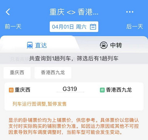 4月1日,重庆直达香港高铁恢复开行!3月23日开始售票