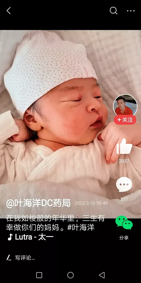 叶海洋今天生了二胎女儿,据说宝贝和老大是同父同母的
