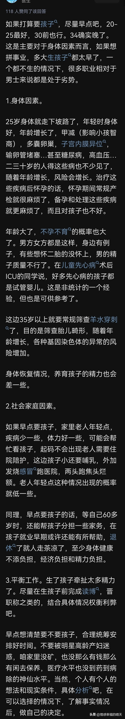 如果打算要孩子,尽量早点吧,20-25最好,30前也行