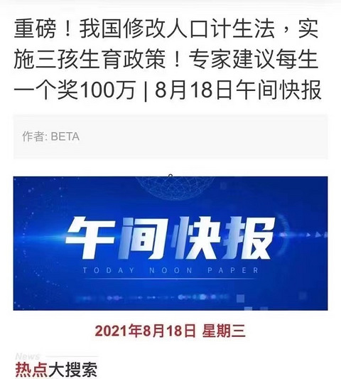 朋友圈看到的,这个专家是谁,我想知道名字好去夸夸他。要是真的每生一个奖100万的话,我觉得我又可以了。生三个就是300万,还上什么班,不担心失业了好嘛。