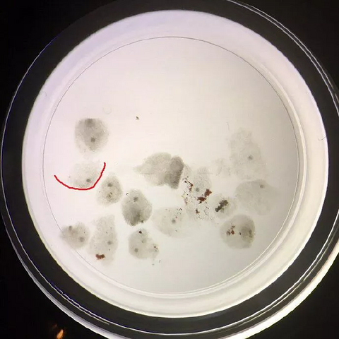 看到试管医生分享的,感觉这个卵子看起来好像青蛙卵,哈哈。 做试管刚刚取出来的卵子是这样子的,和大家想象的完全不一样哦。大约2小时后,胚胎师会将卵子周围的颗粒细胞剥除,观察卵子是否成熟,只有成熟的卵子才能被使用哦。