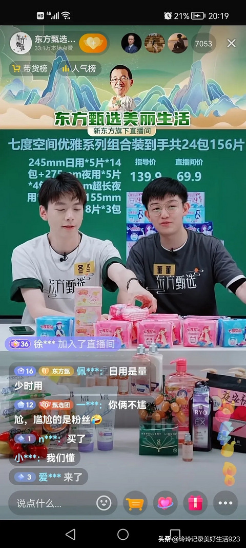 笑不活了,东方甄选美丽生活号两个大男孩在卖卫生巾