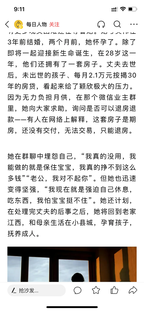 看到字节跳动的员工猝死事件,很多人都在骂该员工的妻子,丈夫还在病危就急吼吼的宣布死亡,字里行间只关心房子。大多数人看到的是妻子的冷漠,我看到的是她的无奈和生活的残酷。一个肯把才两个月大的遗腹子留下来的女人你说她对自己的丈夫有多重情义,现对现实,一个怀有身孕,收入水平负担不起高额的房贷压力,她唯一能选择的路就是卖掉房子 ,尽可能的找公司多赔点钱,然后回老家安心的把孩子生下来。