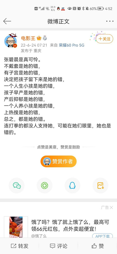 听心疼张碧晨的,孩子又不是她自己一个人就能生下来的