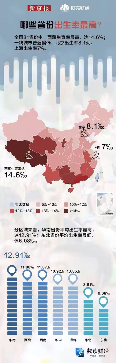 转自新京报中共中央政治局5月31日召开会议,会议指出,进一步优化生育政策,实施一对夫妻可以生育三个子女政策及配套支持措施,有利于改善我国人口结构、落实积极应对人口老龄化国家战略、保持我国人力资源禀赋优势。新京报贝壳财经记者梳理全国31省份生育、人口结构数据,看看哪些省份出生率最高?哪些省份“上有老下有小”,负担最重?