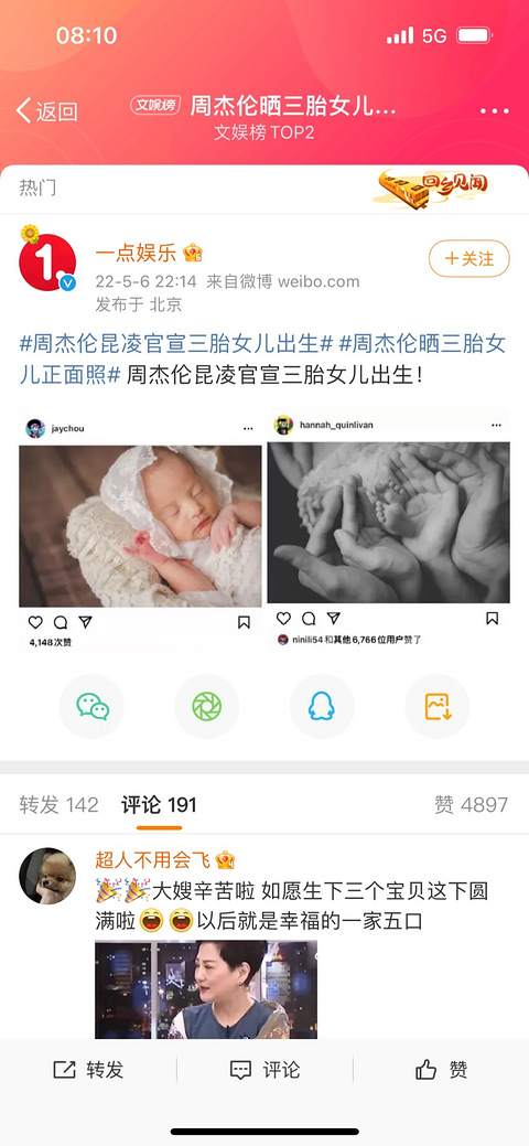 周杰伦昆凌官宣三胎女儿出生!还晒了女儿正面照,超可爱!
