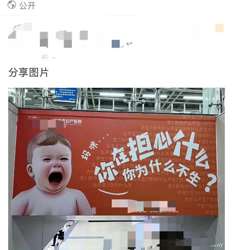 “你在担心什么?”“你为什么不生?”张着血盆大口嗷嗷哭的小孩儿,真够吓人的。不细看的话,还以为这鼓励生育的广告是人流广告。