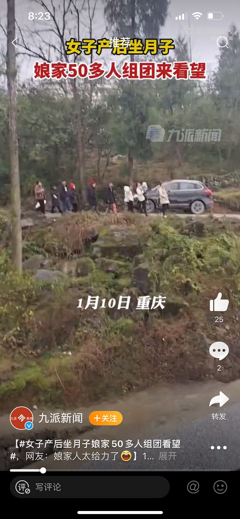 【#女子产后坐月子娘家50多人组团看望#,网友:娘家人太给力了[哈哈]】1月10日,重庆。女子产后坐月子,娘家人一起来了50多人看望她。网友:娘家人太给力了。