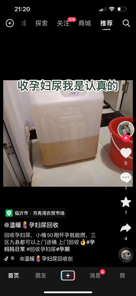 竟然还真有收孕妇尿的,说可以用来做早孕试纸。小桶50,大桶200,感觉这个钱好好赚哦。