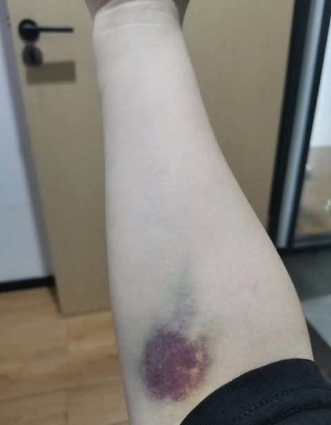 去医院抽血,结果下午就变成这个样子了,同事说是血管破裂,大家有没有这样子过呢?