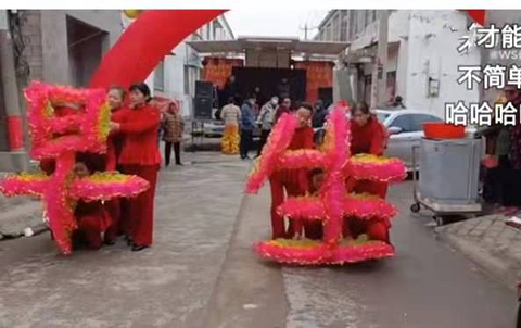 大妈响应“二胎”政策,硬生生跳出个扇子舞,刚看的时候还没注意,以为是做的固定的字体,仔细一看才发现是用扇子拼出来的八个大字——早生贵子,大吉大利。大妈们太会玩了。