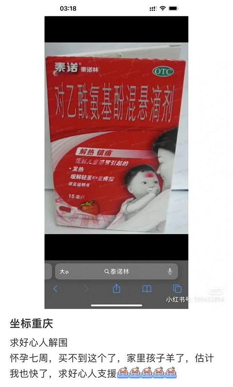 特殊人群没有提前备药真的好恼火啊,怀孕阳了,家里现有的退烧药又不能吃,她说孕妇可以吃泰诺林,让我帮忙找找,但是我问了我的其他孕妇朋友,还有问了几个药房,都没有。一直烧起好怕影响孩子啊。现在建议她去医院看看了,不晓得能不能开到退烧药。 可能刚刚搜了一下泰诺林,我现在一打开小红薯,全是孕妇求泰诺林的。好恼火啊,原来有这么多孕妇买不到退烧药。