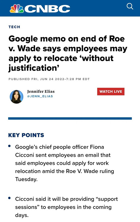 在美国最高法院取消宪法规定的堕胎权之后,美国各大公司的福利优势凸显,目前谷歌迪斯尼和苹果公司都在福利里增加了一条“打胎福利”,它们叫做“关心员工的生殖健康”,具体就是替员工支付去美国目前可以打胎的州或者国家打胎的费用。据预测美国很快起码要有一半以上的州禁止堕胎,美国的保险公司肯定要把“打胎”这个项目去掉,如果自费打胎那费用可能达到上万美元。