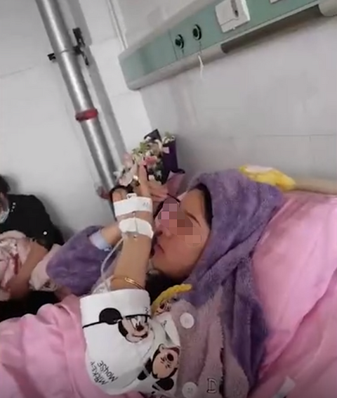河南周口,一女子刚生完孩子,就躺在床上化妆涂睫毛膏。果然还是顺产好啊!!!