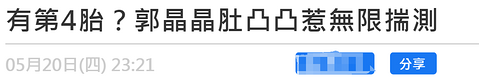 5月20日,有香港媒体爆料“跳水皇后”郭晶晶腹部微微凸起,疑似已怀上第4胎。 转自盖饭娱乐官方号