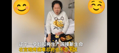 媳妇在医院待产,吃饭的时候遇到宫缩疼痛难忍却又不忘吃饭
