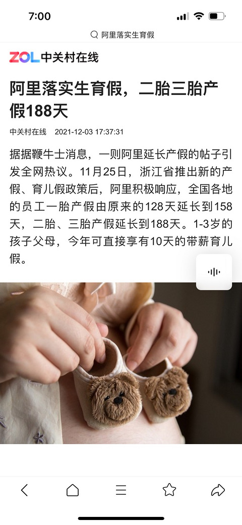 阿里落实生育假,全国员工一胎产假158天,二胎三胎188天