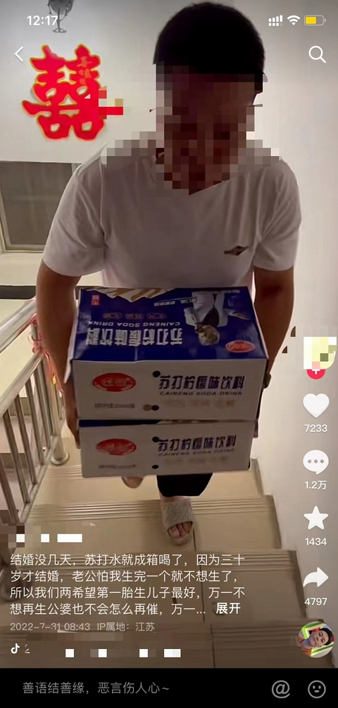 民间的各种偏方大家多多少少都听说过,喝苏打水容易生男孩儿就是其中之一。最近这样的传闻在网络上又盛行起来。小小的苏打水,真的有那么神奇吗? 近日,宿迁一网友在某短视频平台发布了一段视频称,因为自己怀有身孕,为了能生个儿子,丈夫听信偏方,将家中的所有饮用水都换成了苏打水,并配文“苏打水成箱喝”。