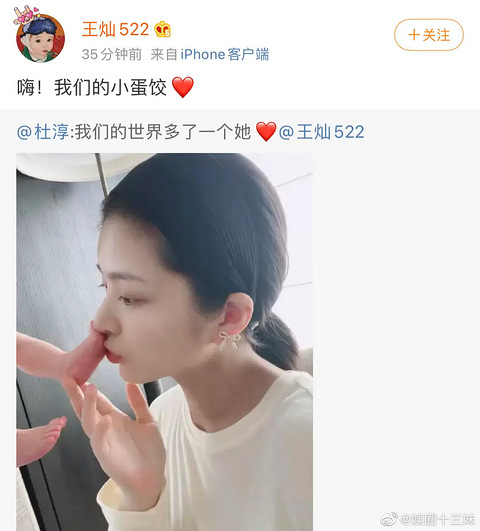 杜淳老婆生了,太惊人,生了就瘦了,等于是卸完货就是原来的她了,身材太惊人了。 4月20日,杜淳在社交平台晒出妻子王灿亲吻宝宝脚丫的照片官宣当爸喜讯,并配文:“我们的世界多了一个她。”随后,王灿也转发了杜淳的动态,并透露女儿的小名叫“小蛋饺”,看来“蛋饺肉丝”的梗是过不去了。