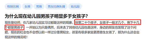 中国二胎的性别比例已经严重失调,一胎时大家还能顺其自然,再看二胎,性别选择开始增加,于是乎,一个幼儿园里28个人的班,24个男孩!