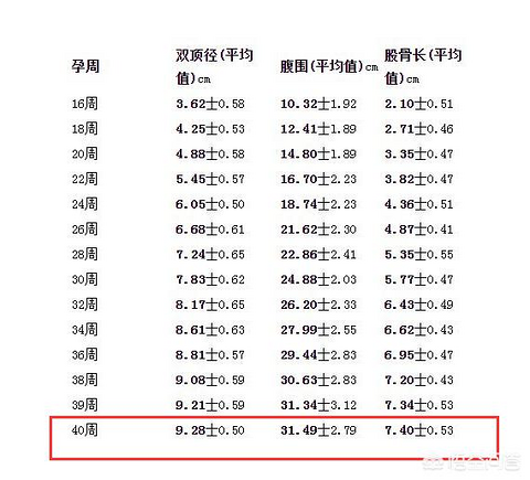 孕周和胎儿双顶径对照表,超过10CM就很难顺产了