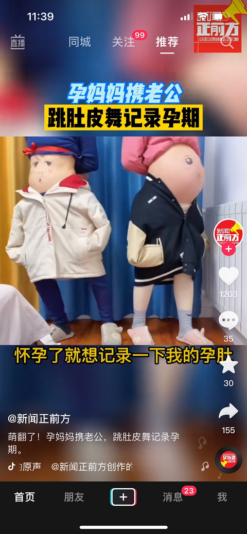 孕妈妈携老公跳肚皮舞记录孕期,这也太可爱了吧!感觉爸爸肚子要是再大点的话,效果更佳。