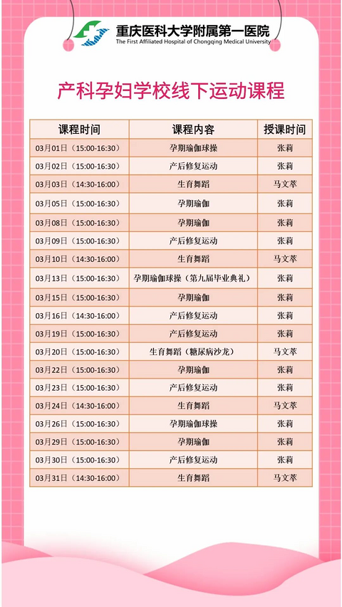 重医附一院3月产科孕妇学校线下运动课程来了!