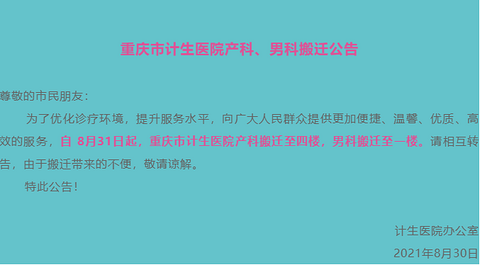 重庆市计生医院产科、男科搬迁公告,有在这边检查的注意了