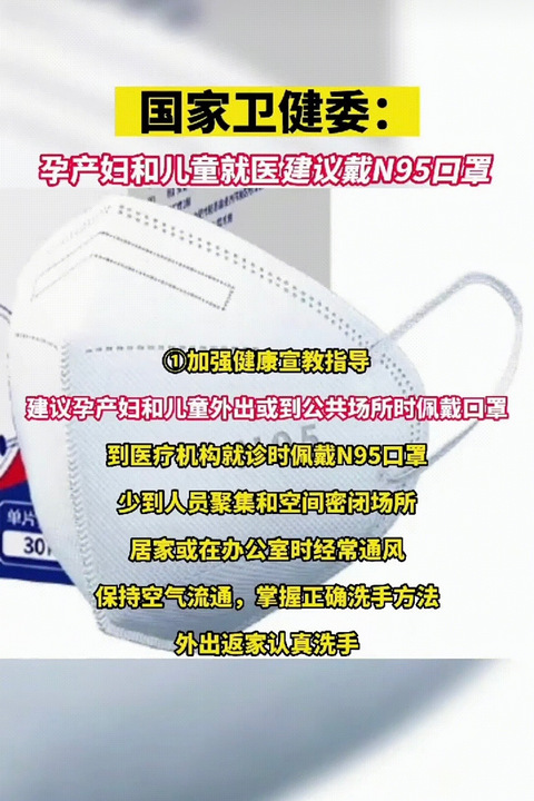 国家卫健委建议:孕产妇和儿童就医建议戴N95口罩。