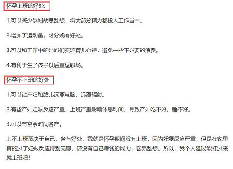 怀孕后上班还是不上班?感觉主要还是考虑经济因素和身体条件