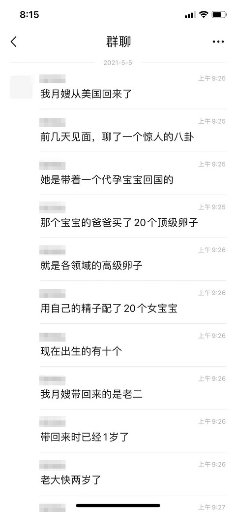 今天吃了一个大瓜!网传四川教育大亨美国代孕产10女,都是在国外买的顶级卵子,各领域的高级卵子,模特啊,音乐家啊,金融学博士等等。实在是搞不懂代孕这么多女儿出来是为哪般…穷限想。奉上瓜。