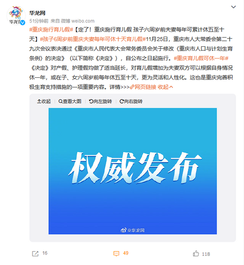 重庆生育政策来了!产假适当延长,育儿假可休一年