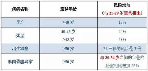 “高龄宝爸”好像没听说过,但真有!目前,国际上对高龄孕妈妈定义为≥35岁,但对于高龄宝爸的定义还真没有明确的界限(我国规定,捐精年龄在22—45岁)。在目前的相关文献研究中,大多数把高龄宝爸定义为≥40岁。 高龄宝爸对胎宝的近期影响有哪些?目前研究达到共识的疾病及风险如下: 来自芜湖广济妇产科符荣莲