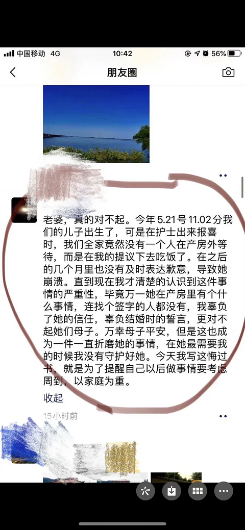 一个男的,在老婆生孩子的时候,他带着全家出去吃饭了