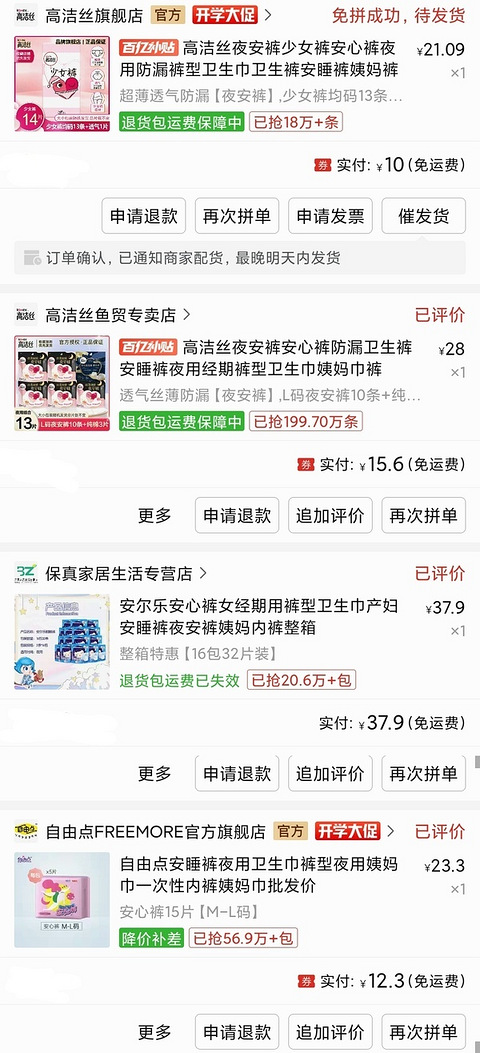 姐妹们每月花在卫生巾上的钱是多少?我要花30+,量大省不了钱