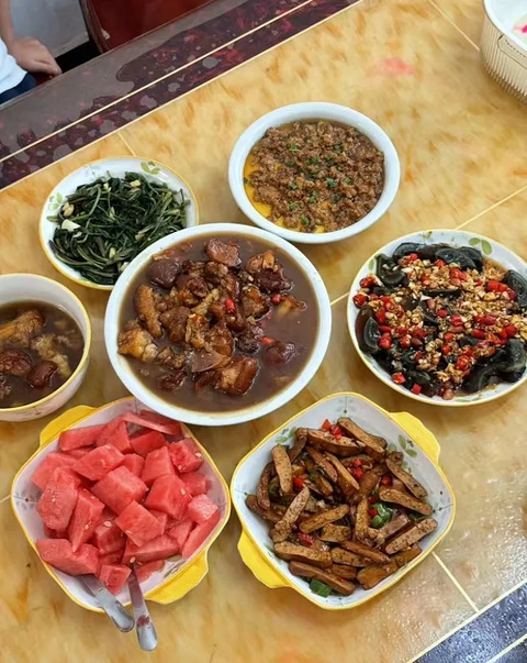 很多人对100块都没有概念!自己做这一桌都要100块猪蹄50皮蛋12 空心菜5块 肉沫蒸蛋 肉末5块钱鸡蛋5块钱香干6.8元 西瓜17合计100