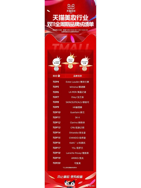 786亿!美妆双11榜出炉,来看你买的牌子有没有上榜?