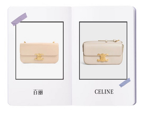叭叭几个中国人就骗中国人的“国货”,听我一句劝,买的时候还是先考虑考虑吧!打着国产的旗号却100%是在用脚做设计,让人很难支持。 1.百丽不能说是毫不相关,简直就是一摸一样。 celine的标志性设计就是这个凯旋门锁扣,早在1973年就已经诞生。