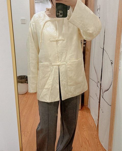 今年新中式太火了,想着过年服整套新中式穿穿,在网上看了很多家最终选了moco家新款,老公说我穿起来像酒店/茶楼服务员上身很宽大,非纸片人估计穿不出时尚感,对新中式从此死心。