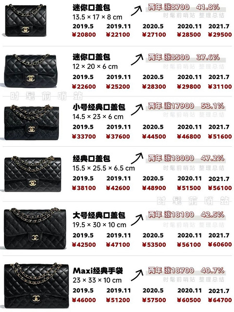 直逼7万+最高涨53%!2019-21年chanel涨价汇总