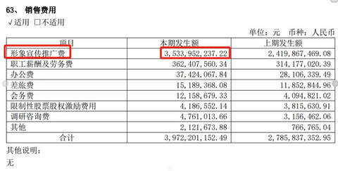 看了珀莱雅2023年的年报,发现他们有一项支出是形象宣传推广费,2023年花了3,533,952,237.22,35亿吗?我没看错吧 差不多是销售费用中职工薪酬及劳务费的10倍,职工薪酬及劳务费是 362,407,560.34,3.6亿 研发费用也投了不少,大约是1.73亿, 来源:珀莱雅化妆品股份有限公司2023年年度报告