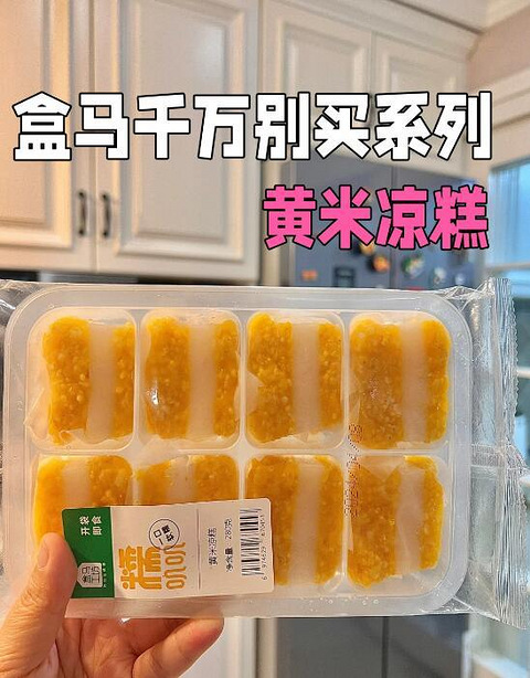 是谁跟我说这个黄米凉糕好吃的?真的浪费我12.9元钱! 黄米颗粒感巨强,一点都不软。 吃起来就像是糯米里面有沙子。 中间的糯米层我以为会是拉丝的,结果居然硬啾啾的,一点都不糯叽叽 和我想象的口感完全不一样!