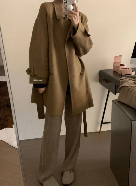 高品质韩装卖家说是 手工双面100%羊毛大衣这个版型看起来真的无敌敞开穿慵懒温柔 扣起来就很有气质这个是驼色黑色,米白色,百搭颜色,我感觉这版型还不错细节图