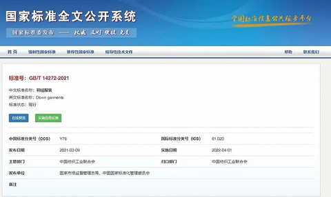 从今年4月1日起,羽绒服装新国标正式实施。此次羽绒新国标规定了羽绒服装的术语和定义、要求、检验方法、检验规则以及标志、包装、运输和贮存。其中最大的亮点是把“含绒量”修改为“绒子含量”。