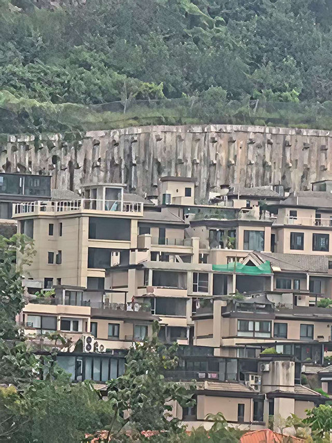 在巴南的汉海海洋公园,看到背后的山上有这样一个小区,几乎是吧山体全部挖掉,修建的房子。 高高的混凝土堡坎,看起来好不舒服。 面向山体这一侧的居民,一辈子都难以看到太阳吧。 如果山体有什么问题,更是好危险哦。 虽然小区看起来的品质还不错,你原意住吗?