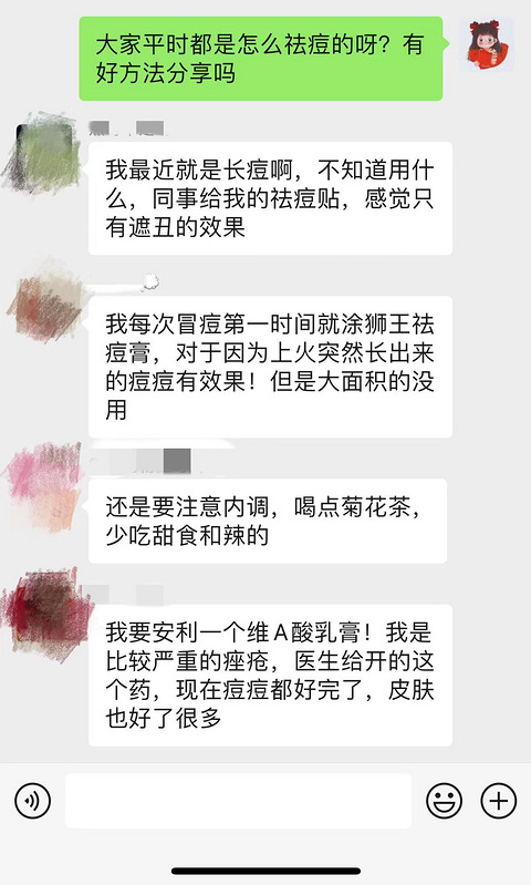 大家日常所说的长痘和医学所说的痤疮,到底是不是一种东西?它们有什么区别?其实不管是红斑、丘疹、丘疱疹脓疱、结节、囊肿,还是一般的红斑、丘疹,粉刺,它们都叫痤疮,只是不同种类而已! 那么今天,我们就来聊聊:如何用不同方式治疗不同种类的痤疮! 在购物狂的官方群里首先就让大家先讨论了一下,没想到大家对于痘痘这个东西,都是有很多宝藏经验的呀! 也同样欢迎大家在这里跟帖回复自己的祛痘心得,或者分享真正好用的