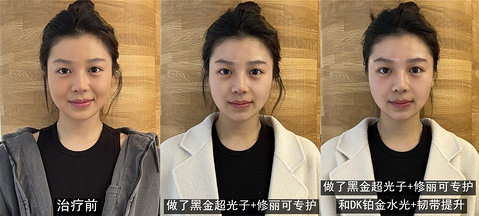 姐妹们!管管又给大家带来大福利了!你敢想?“黑金超光子+修丽可专护+DK铂金水光+韧带提升”4个面部项目这次购物狂福利价只要168元!提亮肤色,改善肤质,提升面部,一次性全部做到!!! 我只能说,这样好的大趴活,谁不买谁后悔~哈哈 那么,这4个项目做完,皮肤到底会有怎样实质性的变化呢?看看今天的模特妹妹,就知道啦~