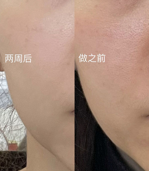 时隔三个多月,看到了热玛吉带来的美好效果,心痒痒想试试看新项目。说是不管是脸上的红血丝、暗沉、毛孔、痘印,都有帮助。做起还是痛,自己网上先买好冷敷面膜啊,现场买感觉被坑了好多钱。 但是你们看看两周的对比图,反正,我入坑了