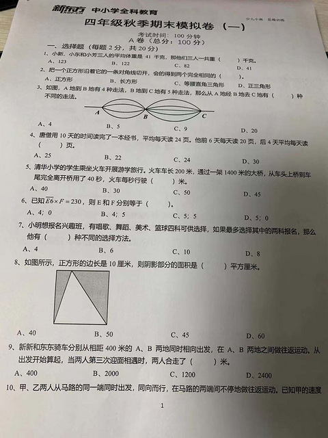 老师给的期末模拟试卷,打印出来给娃儿。看哈新东方题的难度。