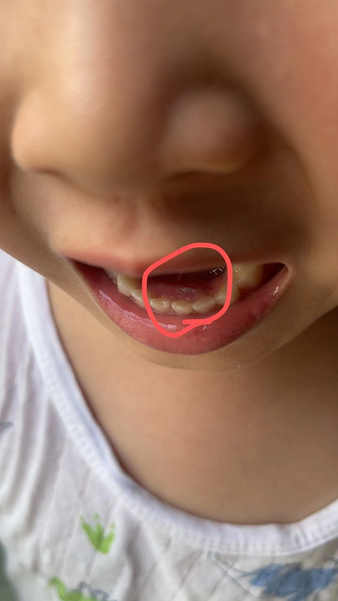 娃儿换牙,乳牙没掉,对应恒牙长出来了。需要及时处理